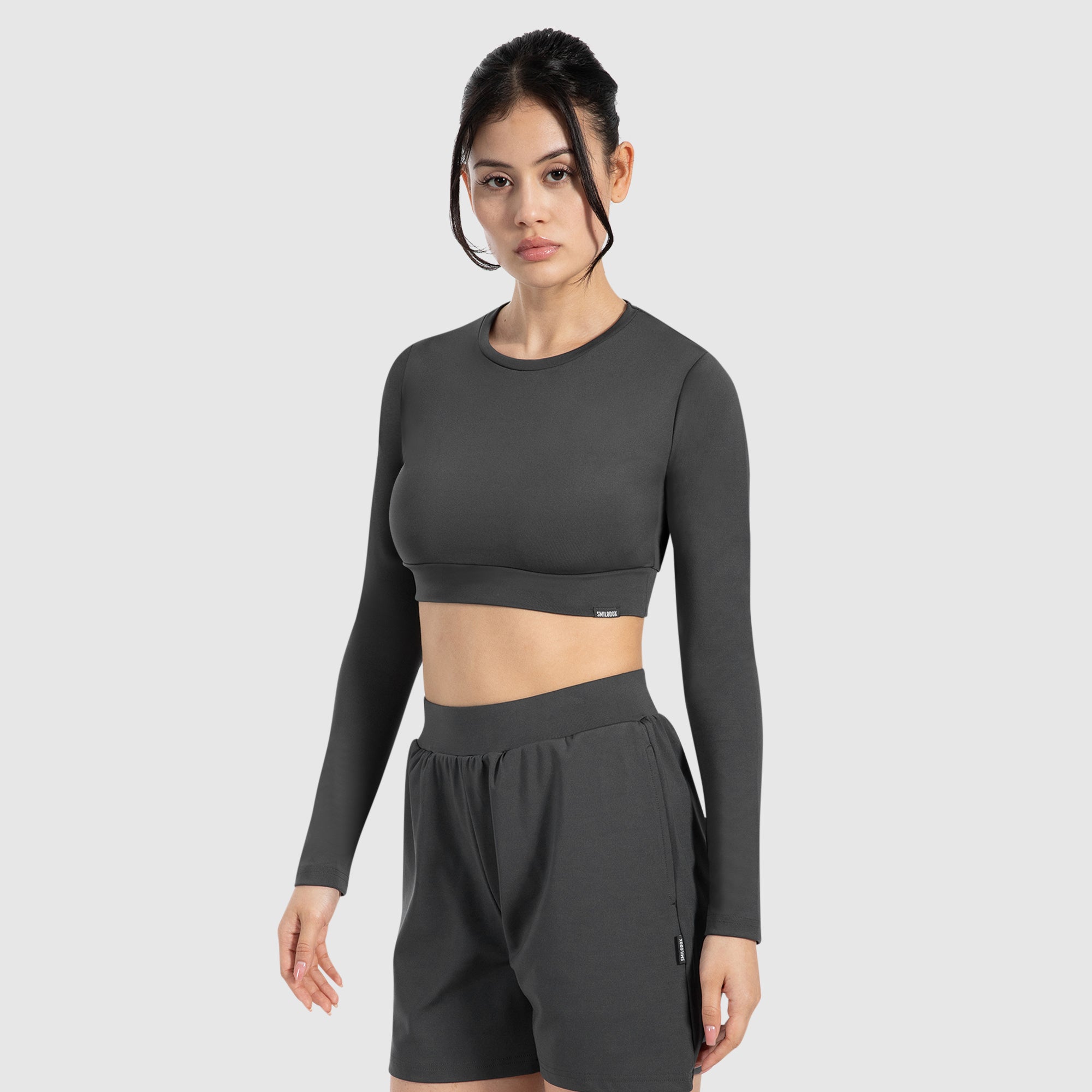 Unser Longsleeve verbindet sportlichen Minimalismus mit bequemem Tragegefühl. Das elastische Material sitzt angenehm auf der Haut, während der cropped Schnitt deine Silhouette betont. Der breite Bund unter der Brust sorgt für Stabilität, ohne einzuengen. Dank des schlichten Designs lässt sich „Tisha“ vielseitig stylen – perfekt für Alltag, Freizeit oder deinen nächsten Active-Look.