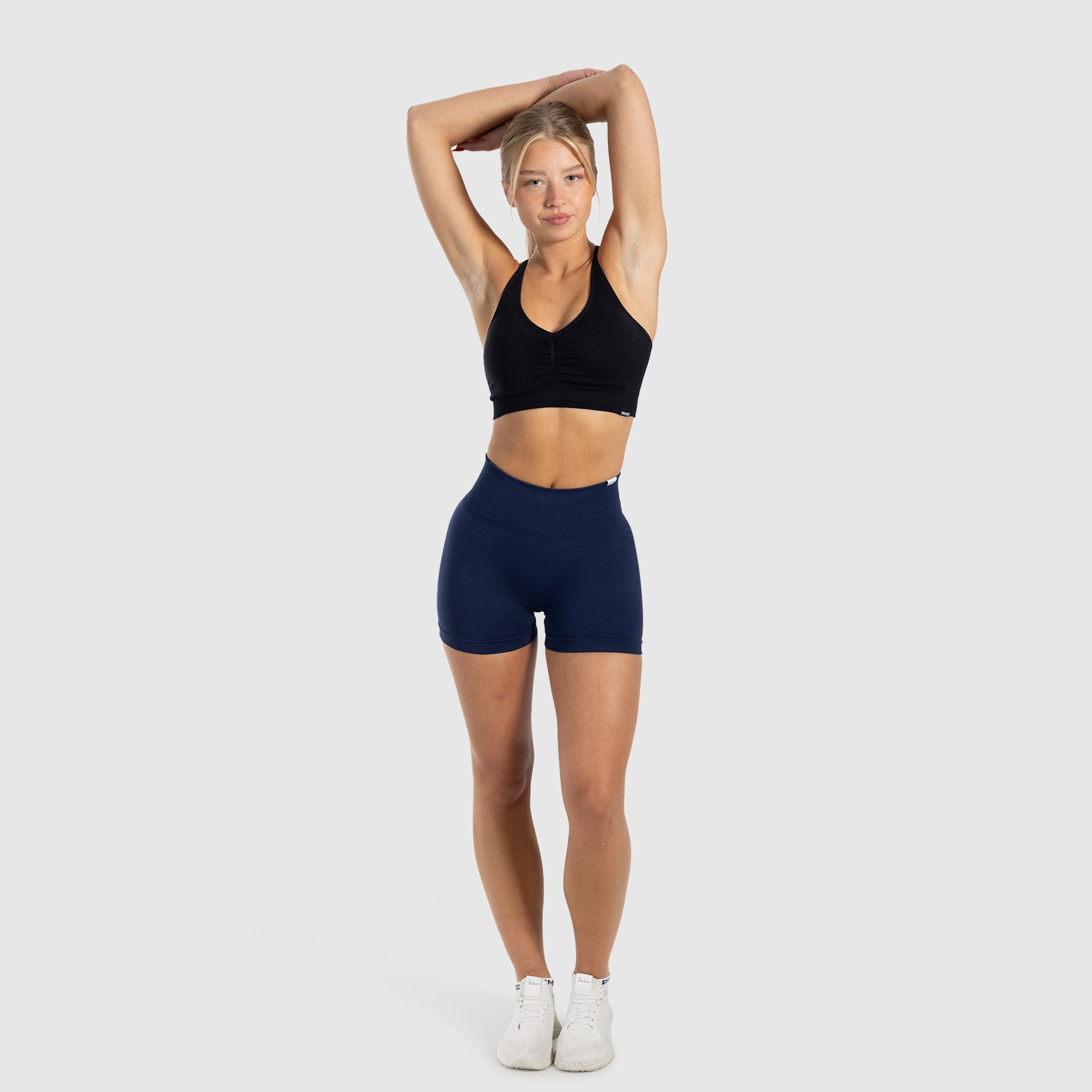Unsere Shorts bringen Form und Funktion in Einklang – mit Push-up-Effekt durch feine Scrunch-Naht, die deine Silhouette sanft betont. Der hohe Bund formt die Taille und sorgt für ein sicheres Tragegefühl. Die nahtlose Verarbeitung passt sich deinem Körper perfekt an und bleibt bei jeder Bewegung dort, wo sie soll – ob beim Yoga, Pilates oder im Studioalltag.